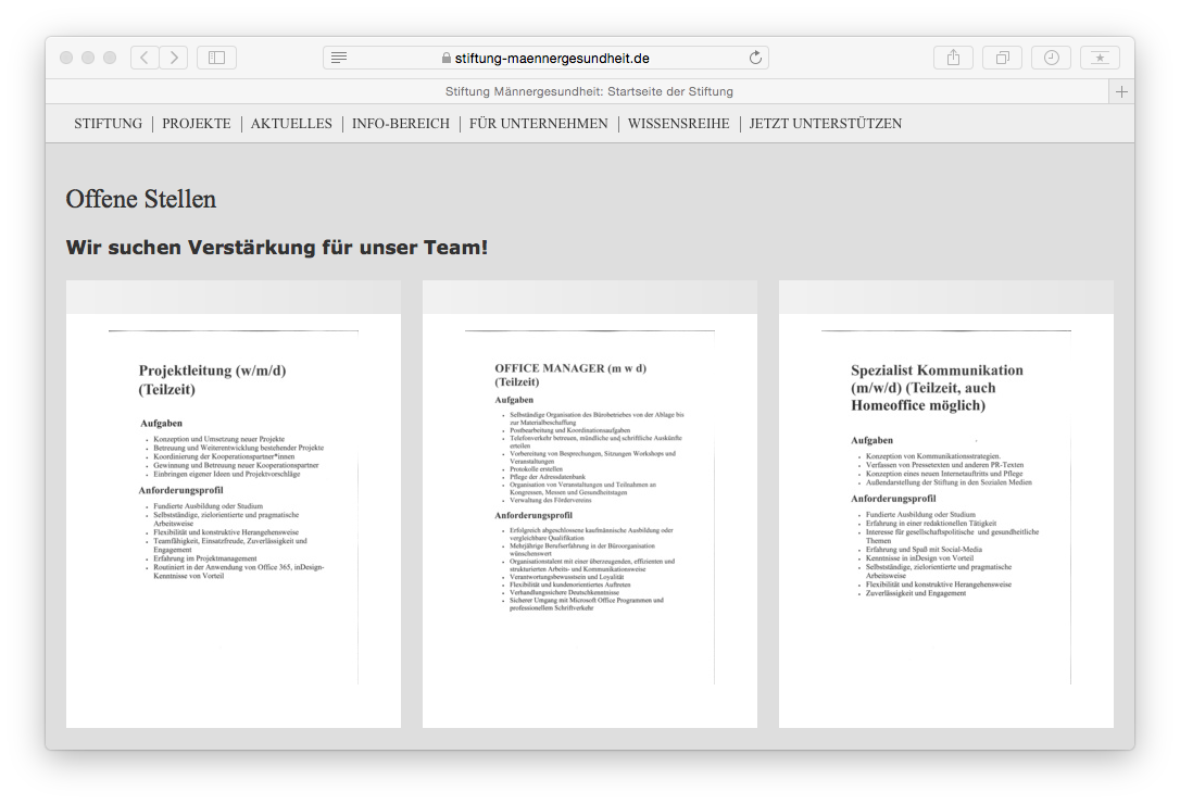Die Stiftung Männergesundheit sucht ab sofort Verstärkung für ihr Team:
