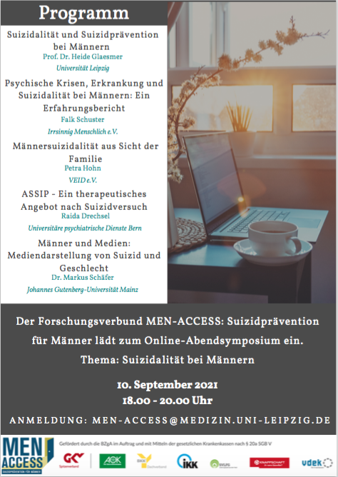 Andreas Kadel wird dieses Projekt vorstellen und über die Erfahrungen im Landkreis Göppingen berichten. Dabei wollen wir Ansätze männerbezogener Suizidprävention auch in den Kontext der Männerberatung stellen und reflektieren, wie Beratungsangebote dieses Thema aufnehmen und für betroffene oder hilfesuchende Männer zugänglich(er) machen können.